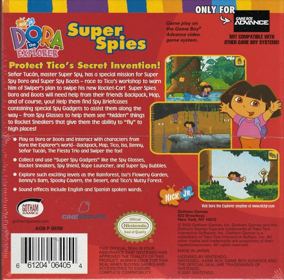 Super Spy Senor Tucon has a hush-hush mission for Dora and Boots. The dynamic duo must race to Tico's workshop to warn him before Swiper can get his hands on his high-flying rocket car. Your objective: go undercover with Dora, Boots and their friends Backpack and Map to protect Tico's top-secret invention. Help the team recover spy briefcases containing special tools of the trade, including spy glasses, soaring Rocket sneakers and more. Interact with more of your favorite characters from Dora's world, including Isa, Benny, the Fiesta Trio and a whole host of others.Pack up your detective gear and get going. Gather spy gadgets, such as the spy shield, the rope launcher and the super spy bubbles, to assist you along the way. Explore exotic regions deep in the Rain Forest, stroll through Isa's flowery garden, stay brave in the spooky cavern and more. As the most famous bilingual child explorer on the map, Dora speaks in English and Spanish just like on the cartoon series.