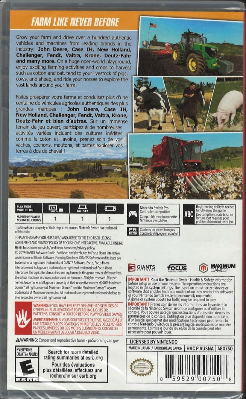 In Farming Simulator 20, take control of vehicles and machines faithfully recreated from leading brands in the industry. For the first time on Nintendo Switch,...