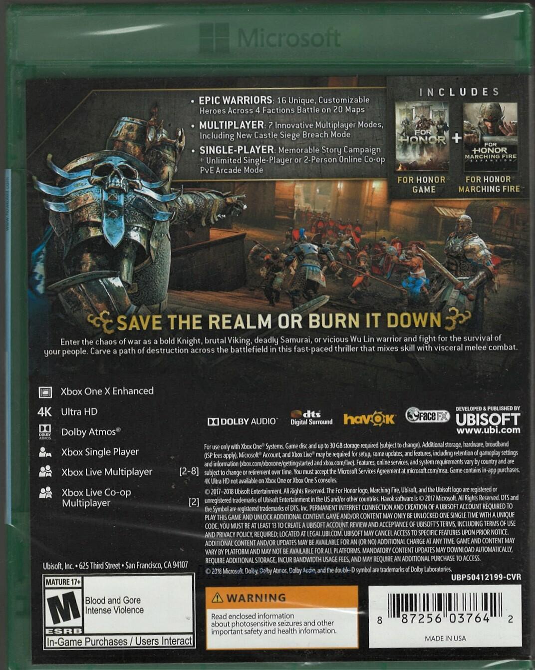 Includes the for honor base game, plus marching Fire expansion. Join the fight as a Knight, viking, Samurai, or wu lin Warrior, and fight for...
