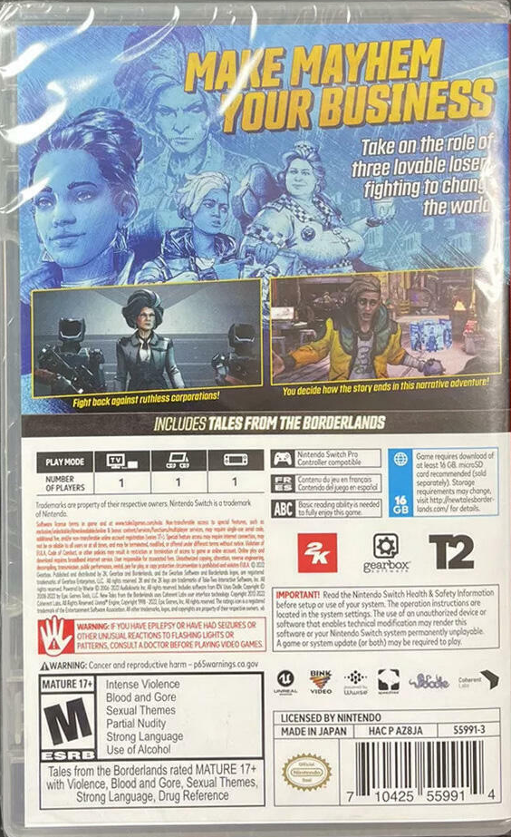 Take a stand against ruthless corporate overlords in this narrative-driven adventure! Within the perpetually war-torn metropolis of Promethea, you'll control Anu, Octavio, and Fran on the worst day of their lives. Help these three lovable losers as they endeavor to change the world (and maybe even save it)! Face down a planetary invasion, vicious vault monster, and cold-hearted capitalist in this cinematic thrill ride where what happens next is up to you! Meet a motley cast full of misfits, assassin bots, and talking guns in this race to the top! It's time to fight back against exploitation and corporate greed. It's time to make Mayhem your business. *Pre-order offer available through October 20, 2022. Digital pre-orders: Adventure Capital Pack will be delivered via game at launch. Physical pre-orders: Pre-order to guarantee access to the Adventure Capital Pack which will be delivered via code in box to be redeemed in game. Terms apply.