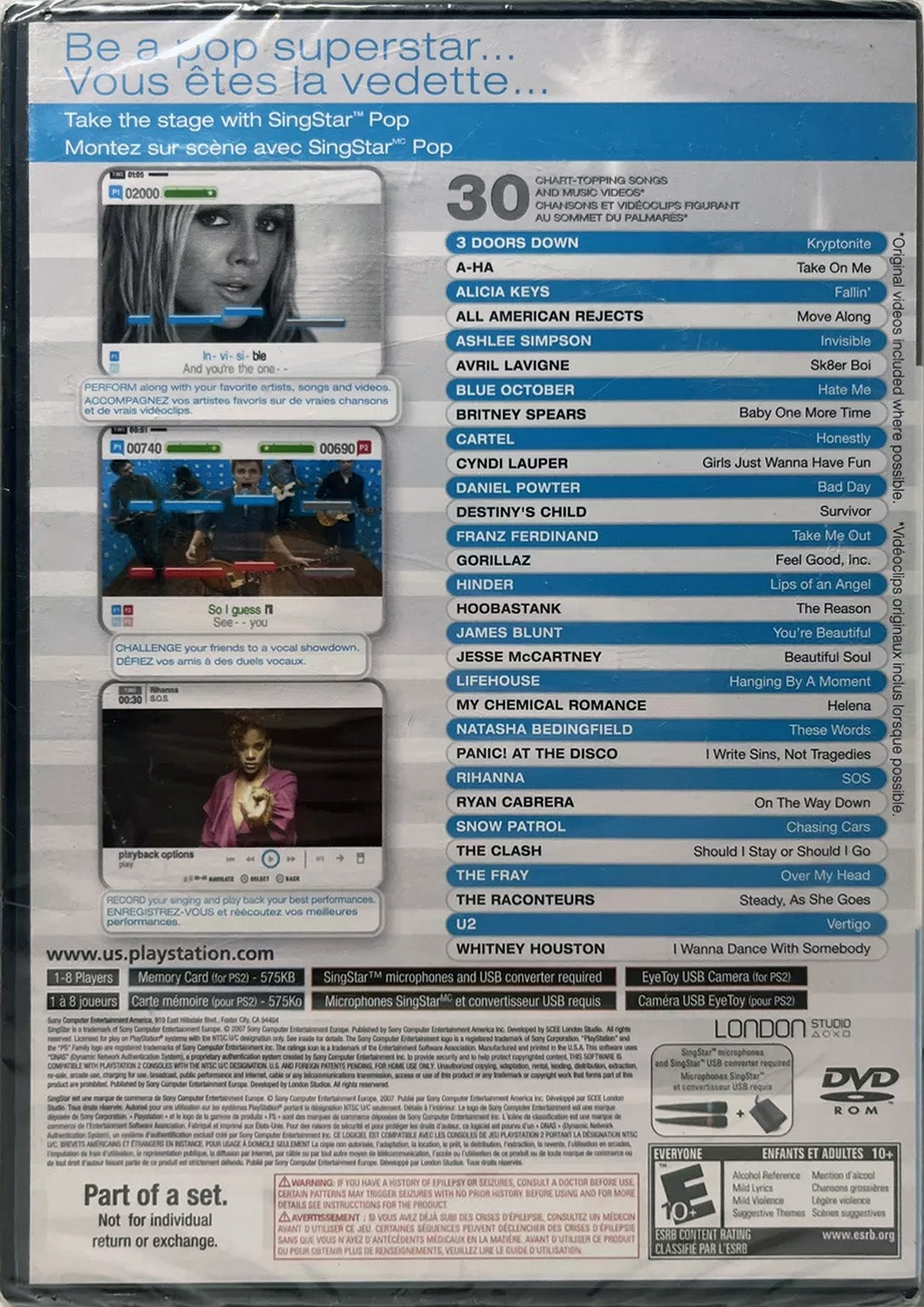 Be a Pop Superstar with SingStar Pop. Featuring a chart-topping line-up of today s best artists songs and videos SingStar Pop is the second release...